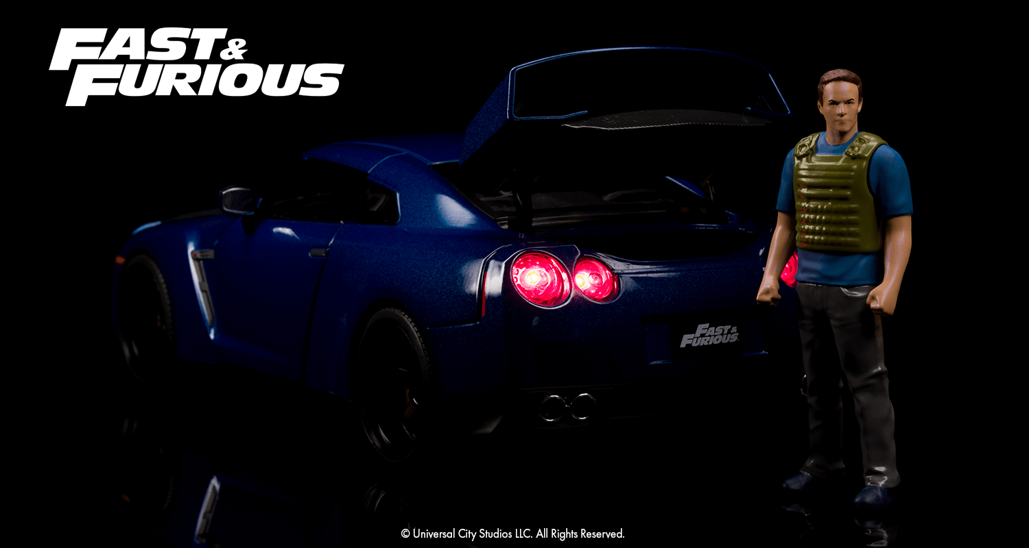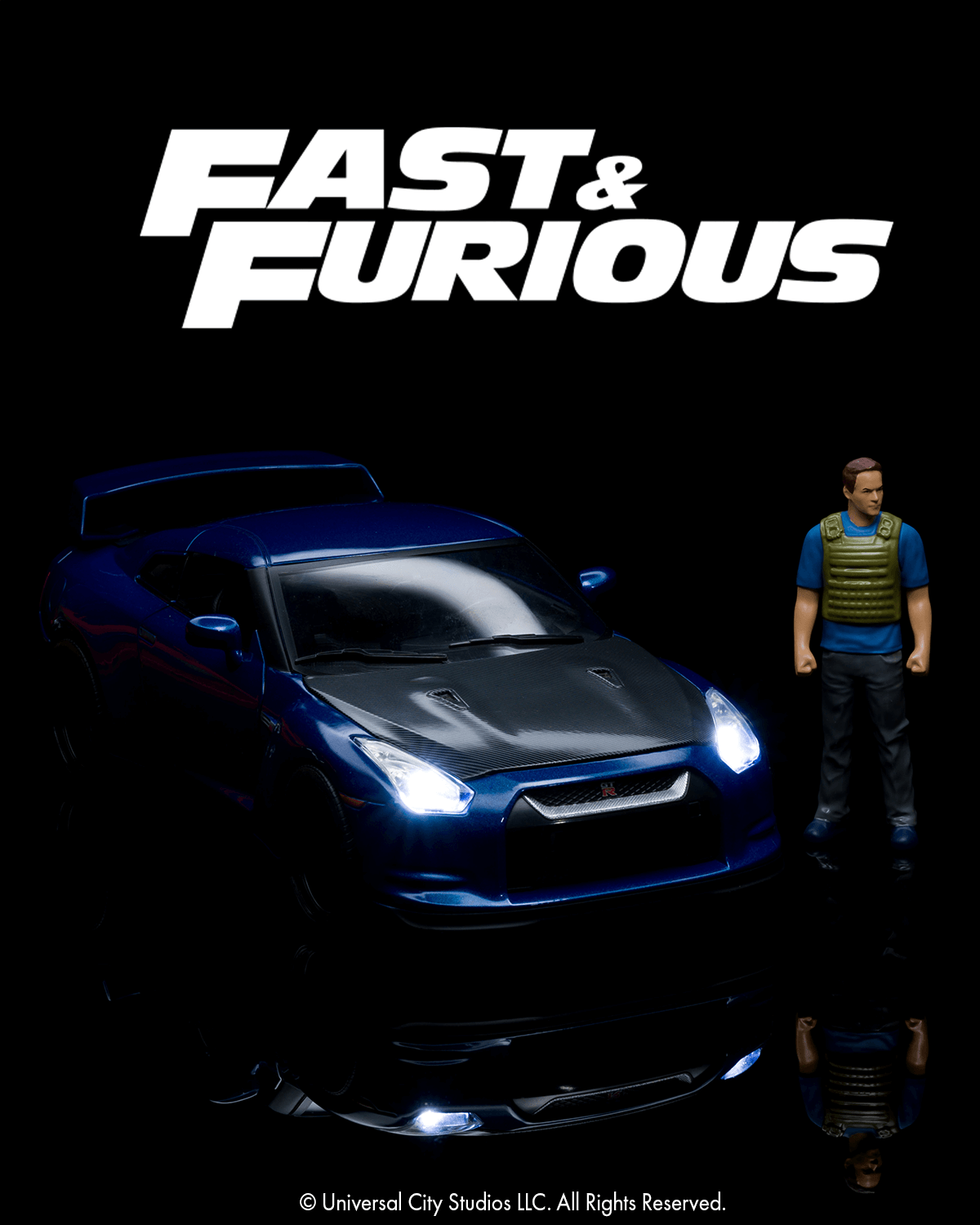 Fast & Furious Brian's Nissan GT-R (R35), 1:18 Scale Vehicle w/ Lights & 3.75" Figure