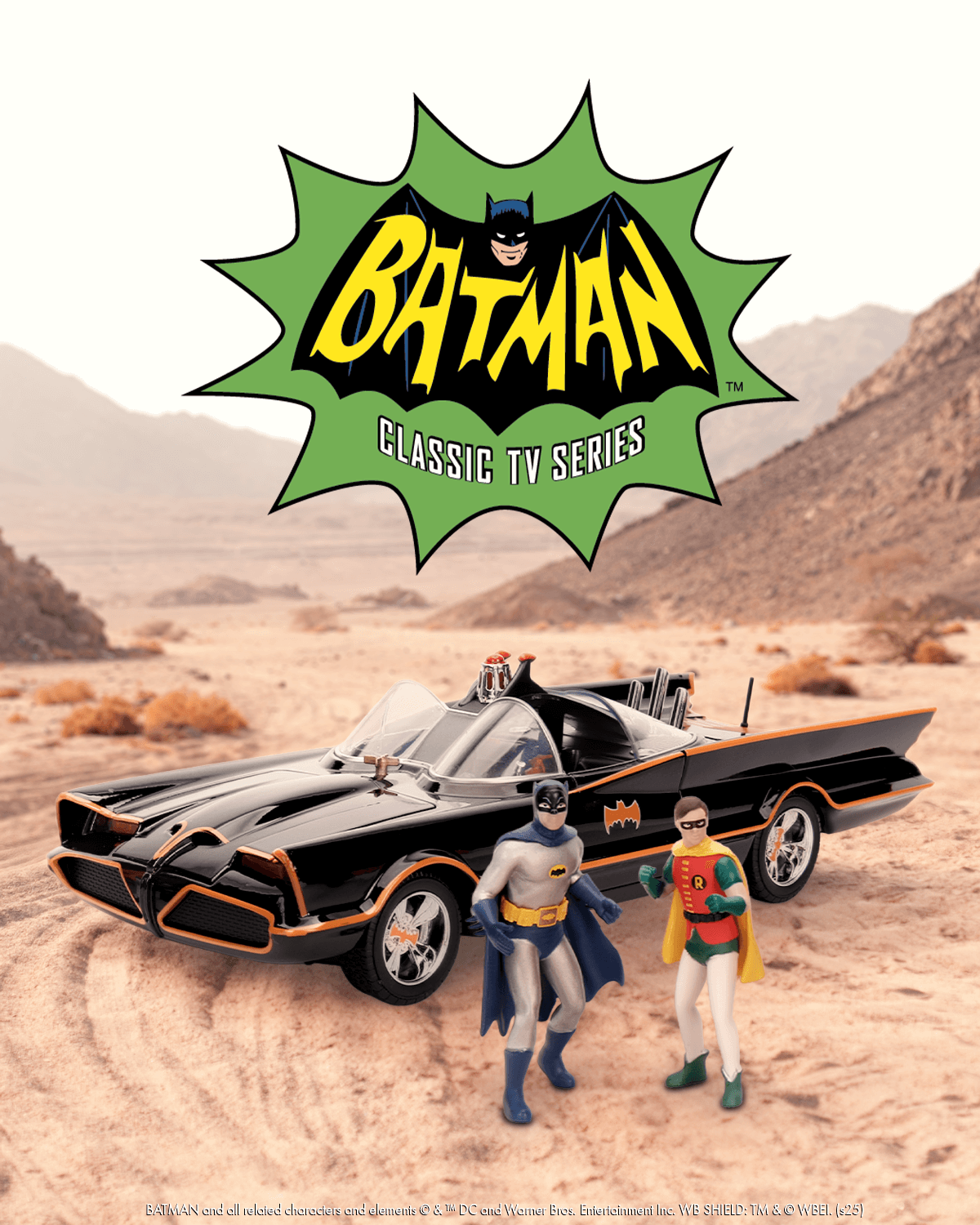 Batman Classic TV Series Batmobile with Batman & Robin, 1:18 Scale Vehicle & 3.75" Figures