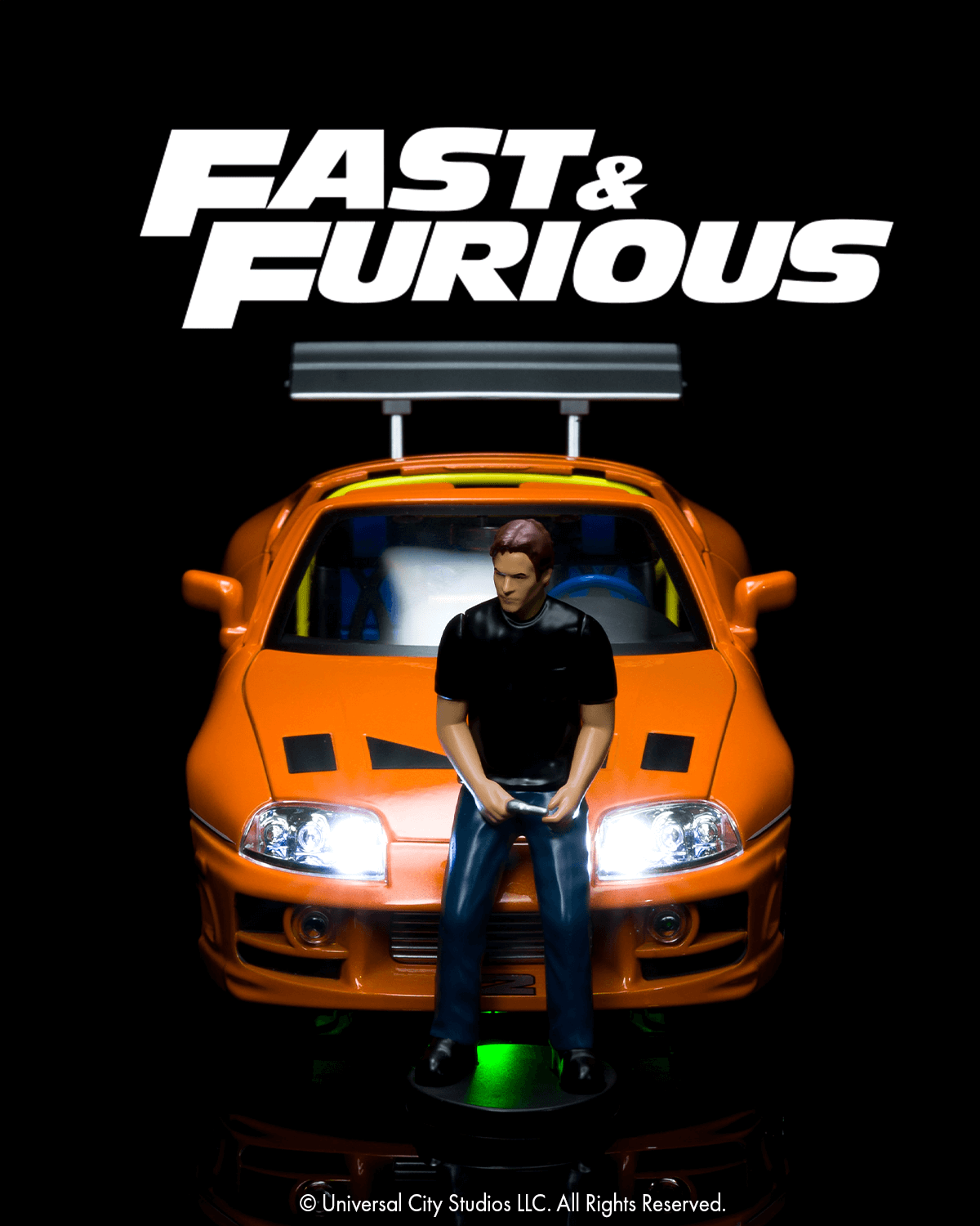 Fast & Furious Brian's Toyota Supra, 1:18 Scale Vehicle w/ Lights & 3.75" Figure