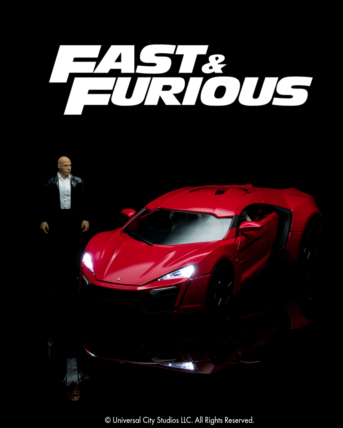 Fast & Furious Dom's W-Motors Lykan HyperSport, 1:18 Scale Vehicle w/ Lights & 3.75" Figure