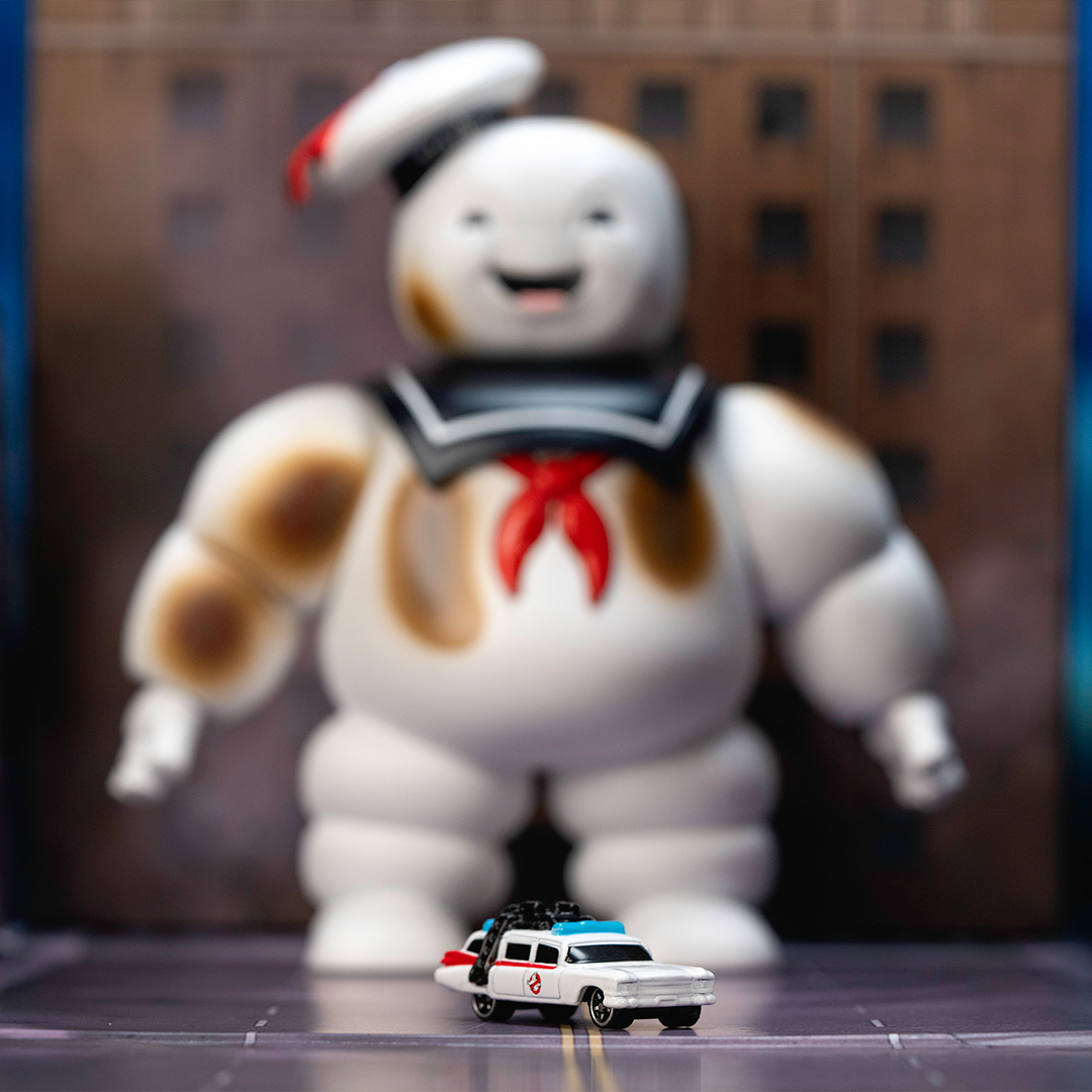 This highly detailed diorama is crafted with incredible attention to detail with premium sculpt and paint applications. Includes an exclusive burnt variant of Stay Puft 6" Metalfig and a 1.65" Ecto-1 die-cast vehicle. Only available in this set.